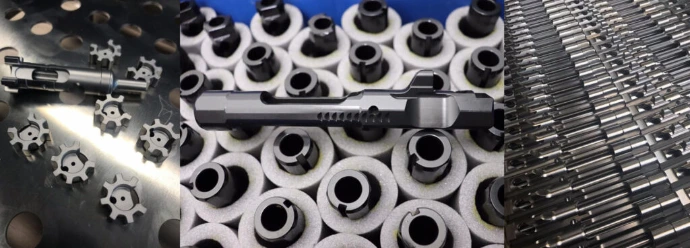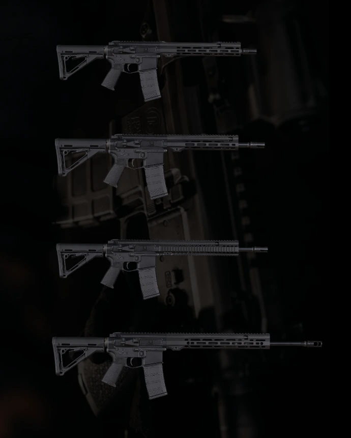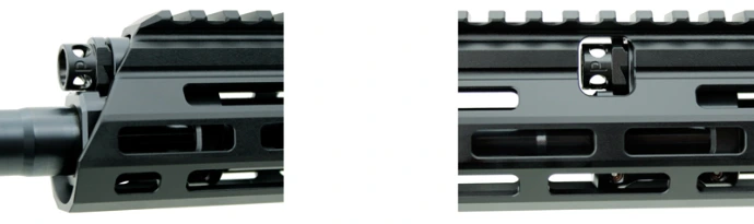 Bei allen M4s® Modellen kommen nur hochwertigste Komponenten aus eigener Fertigung wie zum Beispiel ein 3-PRONG Flash Hider bis 14,5‘‘ und eine 3-Kammer Hochleistungsbremse ab 16,5‘‘ Lauflänge, alle Mündungskomponenten werden mit einer eigenen Seriennummer versehen.