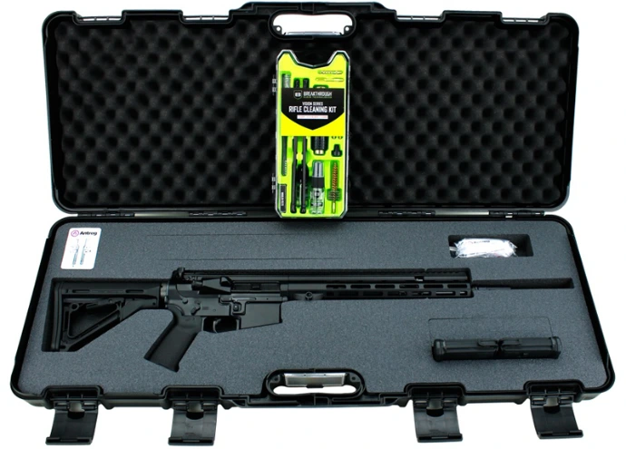 Der Lieferumfang des ARS M4s® beinhaltet einen hochwertigen Waffenkoffer mit Inlays nach MIL-STD, dieser ist ebenfalls nummerngleich zur Schusswaffe und einem Profi AR-15 BREAKTHROUGH® Vision Series Rifle Cleaning KIT.